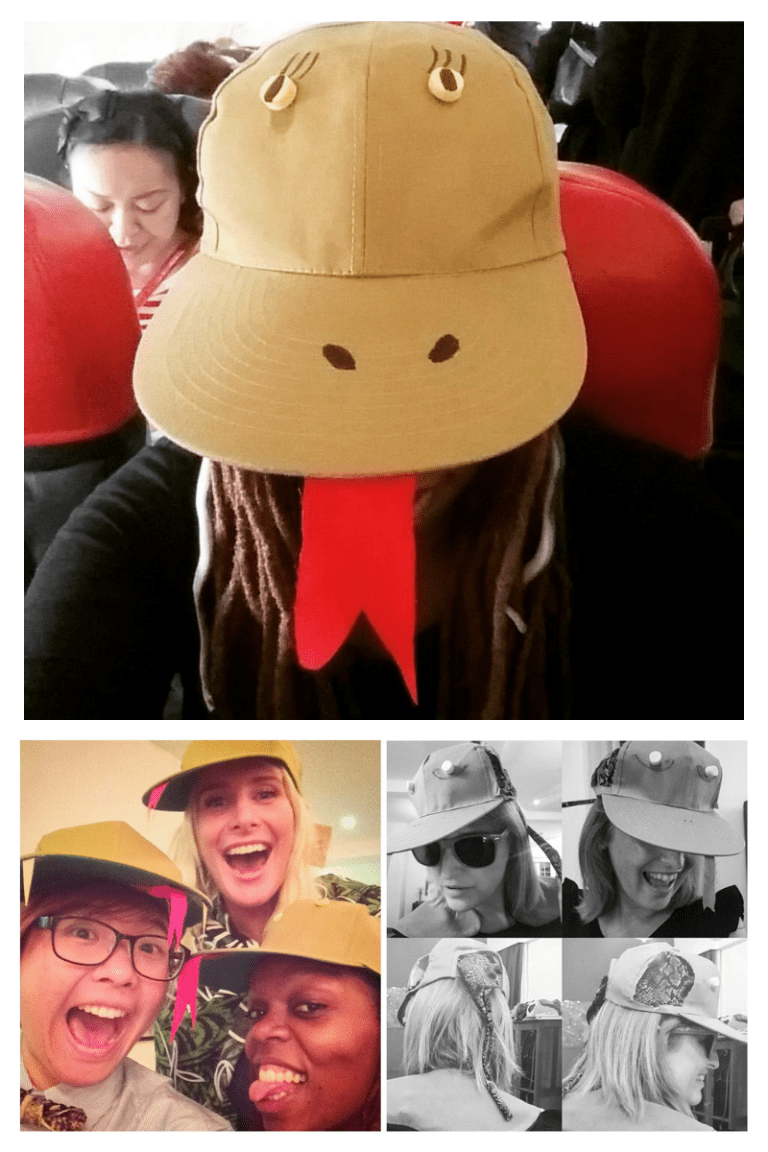 Acionei minha rede de contatos e todos apontaram para o mesmo fornecedor, que tinha apenas algumas pecinhas dentro do tema. O jeito foi apelar para a criatividade (além do Google, YouTube, Pinterest…) e habilidades manuais de nossa estagiária Nethma, que aparece na foto abaixo, à esquerda.